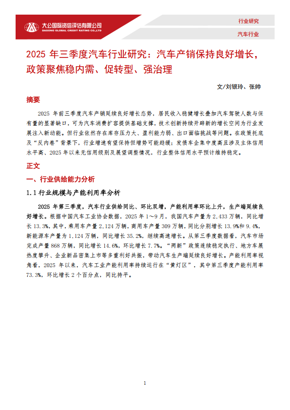 【研报341】2025年三季度汽车行业研究:汽车产销保持良好增长,政策聚焦稳内需、促转型、强治理(PDF文末附下载)