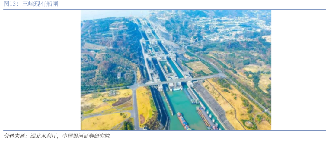 内河航运建设提速,2023年内河投资额达1052亿元。三峡水运新通道项目静态总投资约766亿元,总工期100个月,包括三峡枢纽新通道和葛洲坝航运扩能工程。