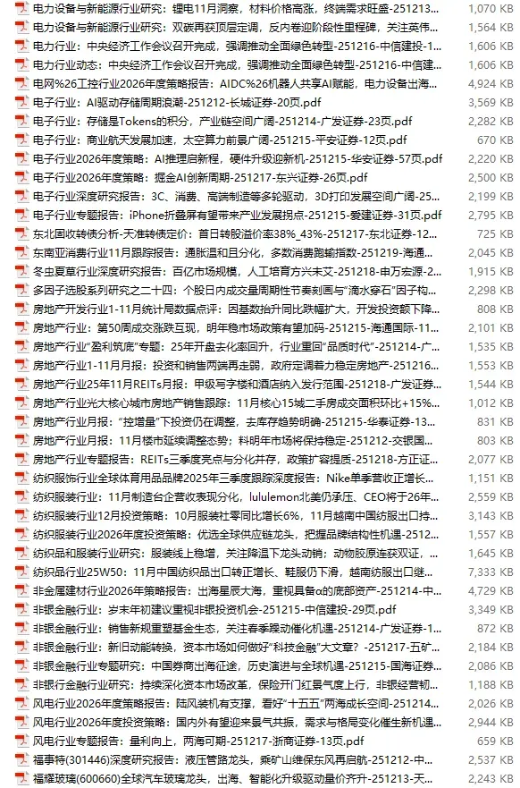 >行业研报合集 2025年12月第3周
