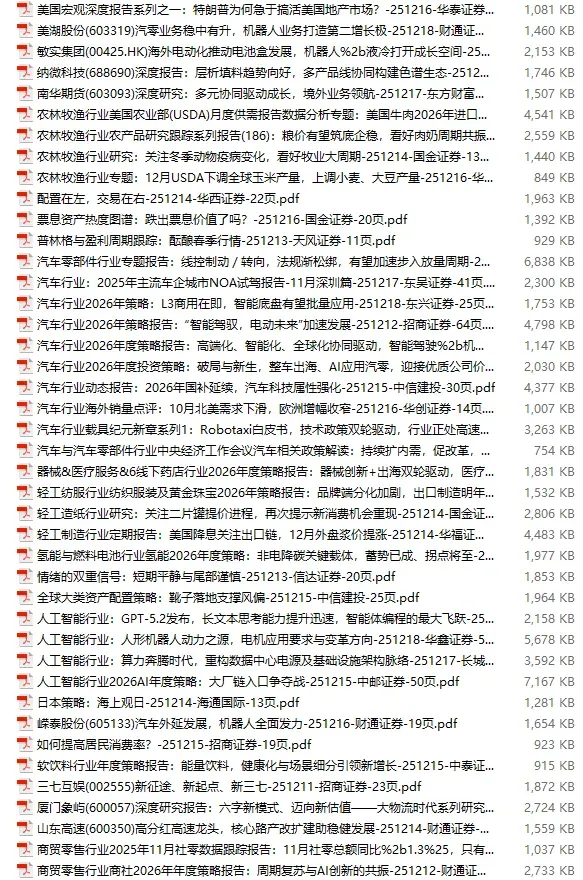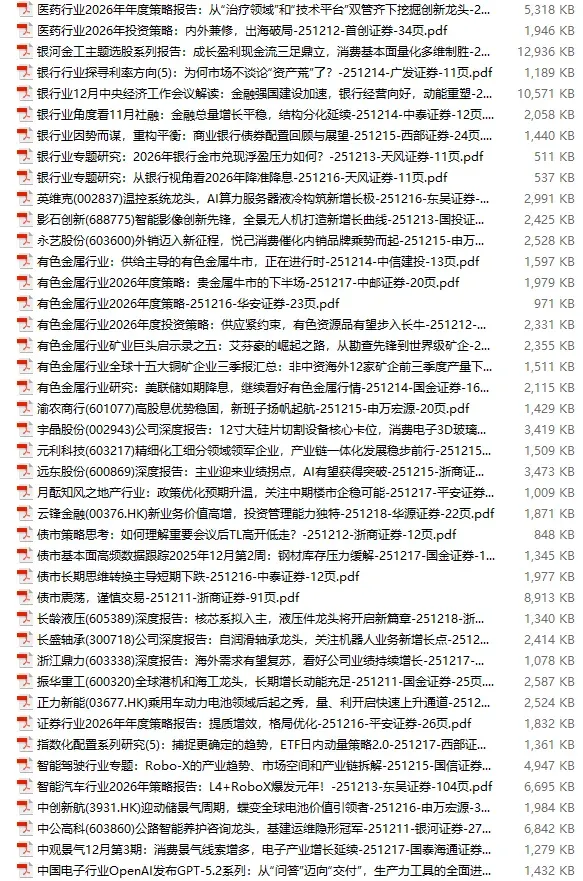 2025年12月26日行业研报分析