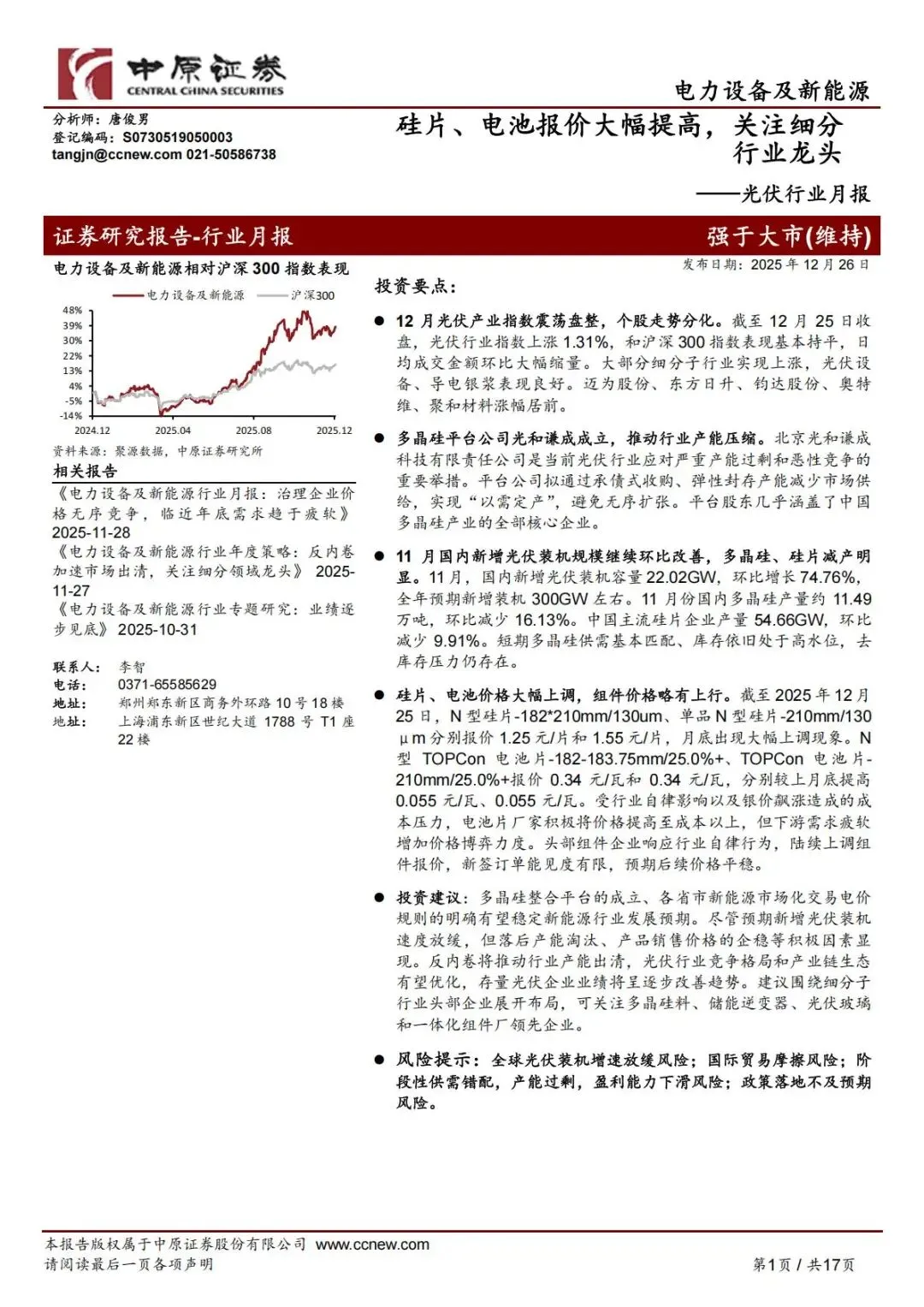 公众号主页添加【微信】,发送名片可进调研群。点击链接进入【知识星球】公众号文章/市场动态即时发布。公众号文章均可在知识星球下载。矩阵账号【资金方向盘】为您提供光伏领域之外更广阔的金融视野。该账号专注发布金融市场热点调研与深度研报,覆盖宏观政策、行业动态、A股、港股、美股等多维度市场分析,助您把握投资机遇,洞察市场风向。