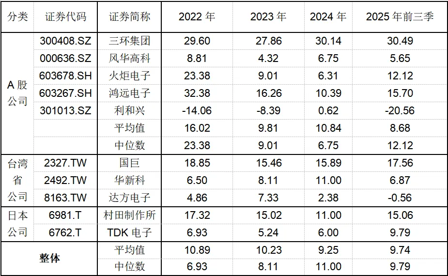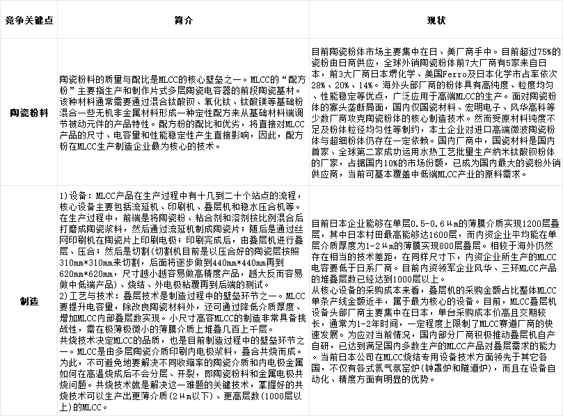 国内企业中能够高端化布局的MLCC企业主要包括三环集团、风华高科等。 三环集团电子元件及材料产品主要包括MLCC(其中主要为常规MLCC)、陶瓷基片、电阻、陶瓷基体。公司的MLCC主要聚焦于5G通信、AI服务器、汽车电子方向,目前已覆盖0201至2220尺寸常规产品及中高压产品、车规产品,同时在高容产品领域也不断取得重大突破。三环集团凭借高端产品占比提升以及自研粉体实现自供带动降本,整体盈利能力优于风华高科。 风华高科主要产品包括片式电容器、片式电阻器、电感器、FPC线路板等,主要应用于消费电子、通讯、计算机及智能终端等领域,其中电容器占比30%左右。公司在MLCC领域以中低端通用型为基础,目前向车规高压产品进行拓展,已进入 比亚迪等主机厂供应链体系。另外还有一些未上市公司,如广东微容等,通过大量研发投入,在超微型、高容量和车规MLCC等高端市场上持续发力,逐步在国内MLCC市场上取得不错的市场份额。