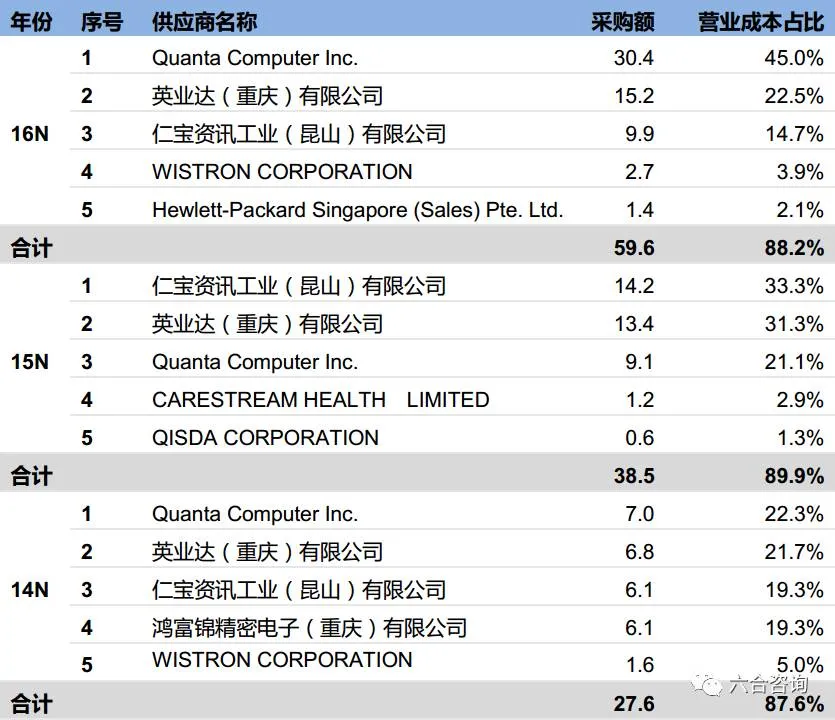 公司前5大采购供应商(单位:亿元)