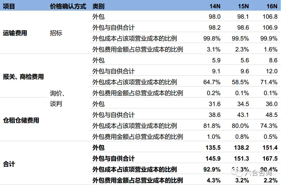 公司采取招标、询价、谈判等方式确认外包服务价格,降低营运成本。公司在市场充分竞争的行业,通过招标、询价、谈判等方式优化服务,降低成本,其中物流服务主要通过招标方式确定服务价格,报关、仓储服务主要通过询价、谈判确认。此外,结合质量管理体系、KPI考核机制筛选、考核供应商。