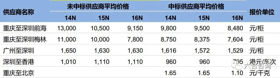公司运输成本最高的五条运输线路承运商招标报价情况