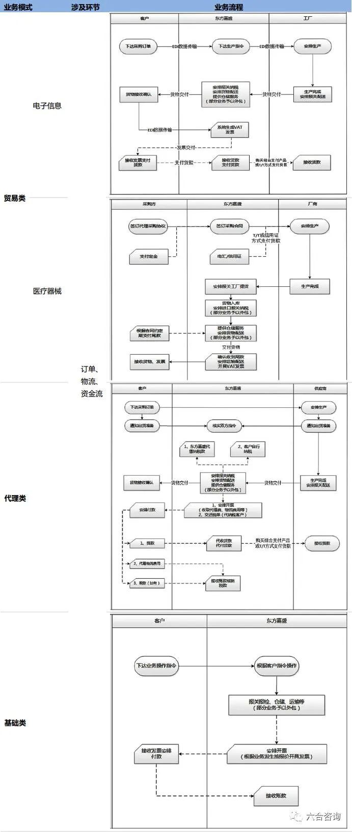 公司基础服务外包,专注供应链管理服务方案设计、执行能力打造与优化。公司依托丰富研究实践经验,总结、提炼出贯穿全流程的“供应链管理解决方案研发及执行流程”,并对其实施系统化、制度化、流程化管理,建立持续创新的长效机制。公司针对贸易类、代理类、基础类供应链管理服务3大业务模式,电子信息、医疗器械等行业,设计专门业务流程。