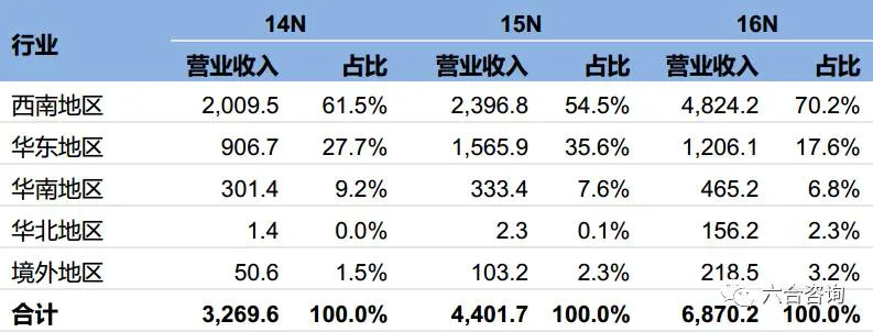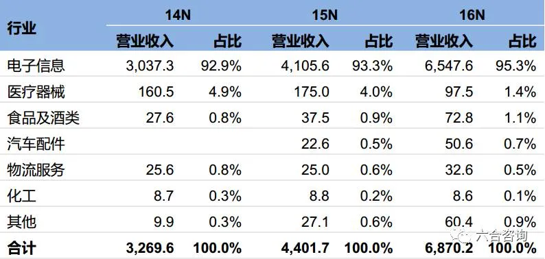 公司收入来源于电子信息、医疗器械行业,受IT产业转移影响,区域集中度逐步提升。公司客户主要为电子信息行业的惠普公司,2016年营收占比达90%,受国内电子信息产业转移影响,惠普供应商也转移至西南地区,或变为西南地区厂商,促使公司营收逐步向西南集中。