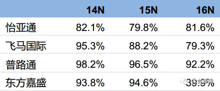 公司通过服务外包,整合行业资源,提升运作效率。公司综合考虑效率、成本等因素,将市场竞争充分、不具备比较优势,且低价值、基础性的运输、仓储、报关基础服务外包,实现优势互补,强化核心竞争力,迅速扩大服务规模。2014~2016年,公司运输服务外包比例约为99.7%,报关商检服务外包比例约为64.9%,仓租仓储服务外包比例约为78.7%。