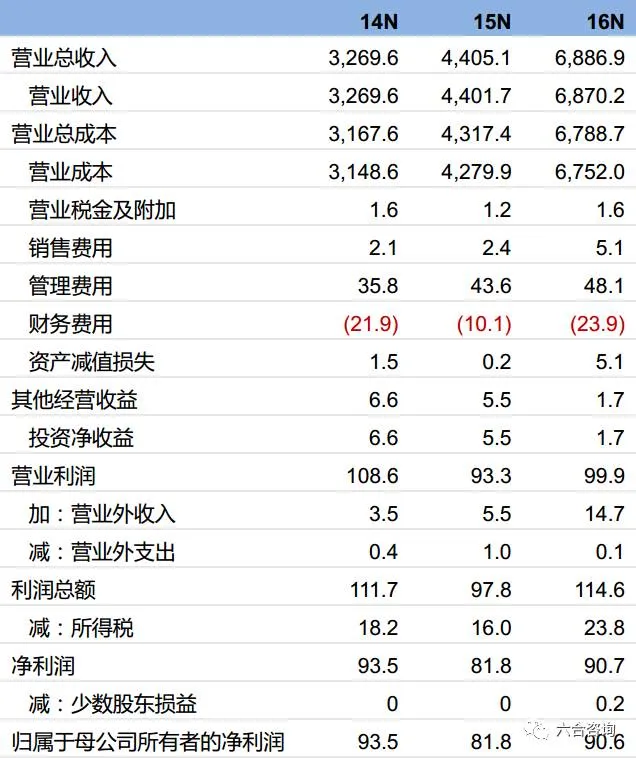 归属母公司净利润:2014~2016年分别为0.9亿、0.8亿(-12.4%)、0.9亿(+10.7%)。