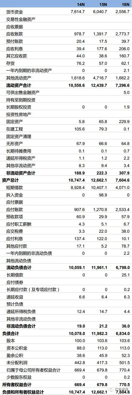 公司合并资产负债表(单位:百万元)