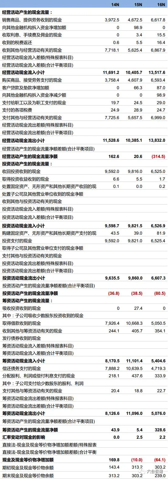 公司合并现金流量表(单位:百万元)