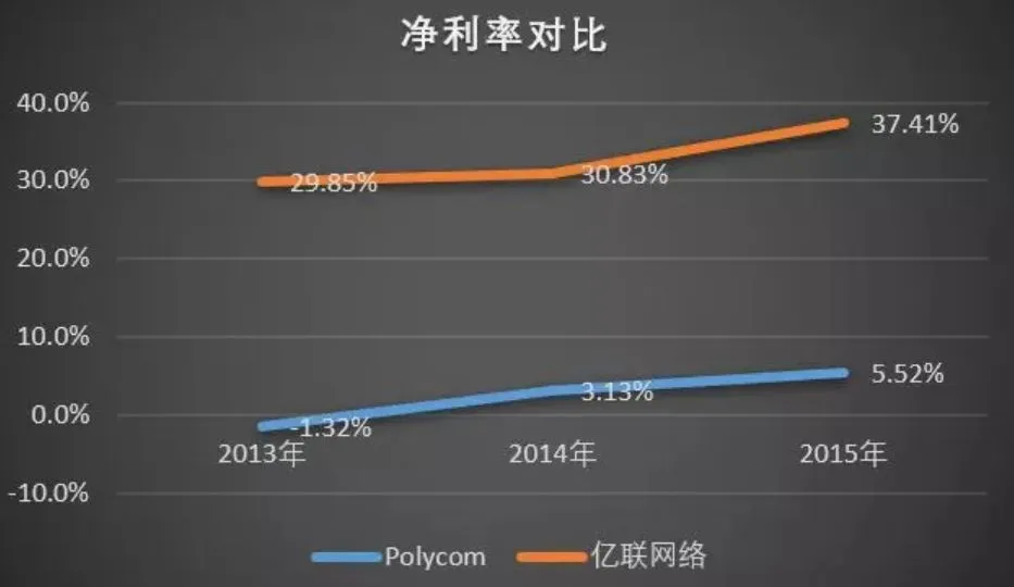 按理说,既然亿联网络有超过95%的营业收入来源于境外,其中30%的收入在美国取得,那美国本土的企业宝利通在销售、语言、政策环境等方面,更具优势才对,可净利率为什么远远低于亿联网络呢?