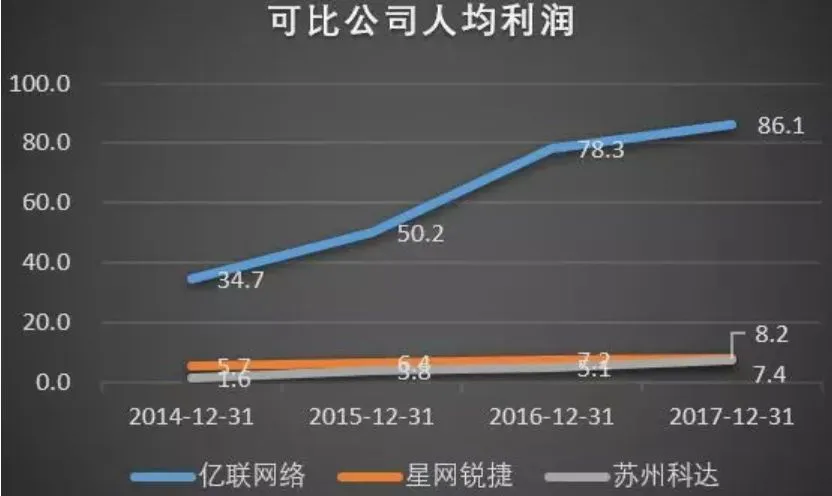 亿联网络2017年年报显示,在职员工686人,为公司创造了5.9亿的净利润,人均创造利润86万元,远高于国内可比上市公司星网税捷的8.2万元和苏州科达的7.4万元,然而薪酬水平却与同行相差无几。
