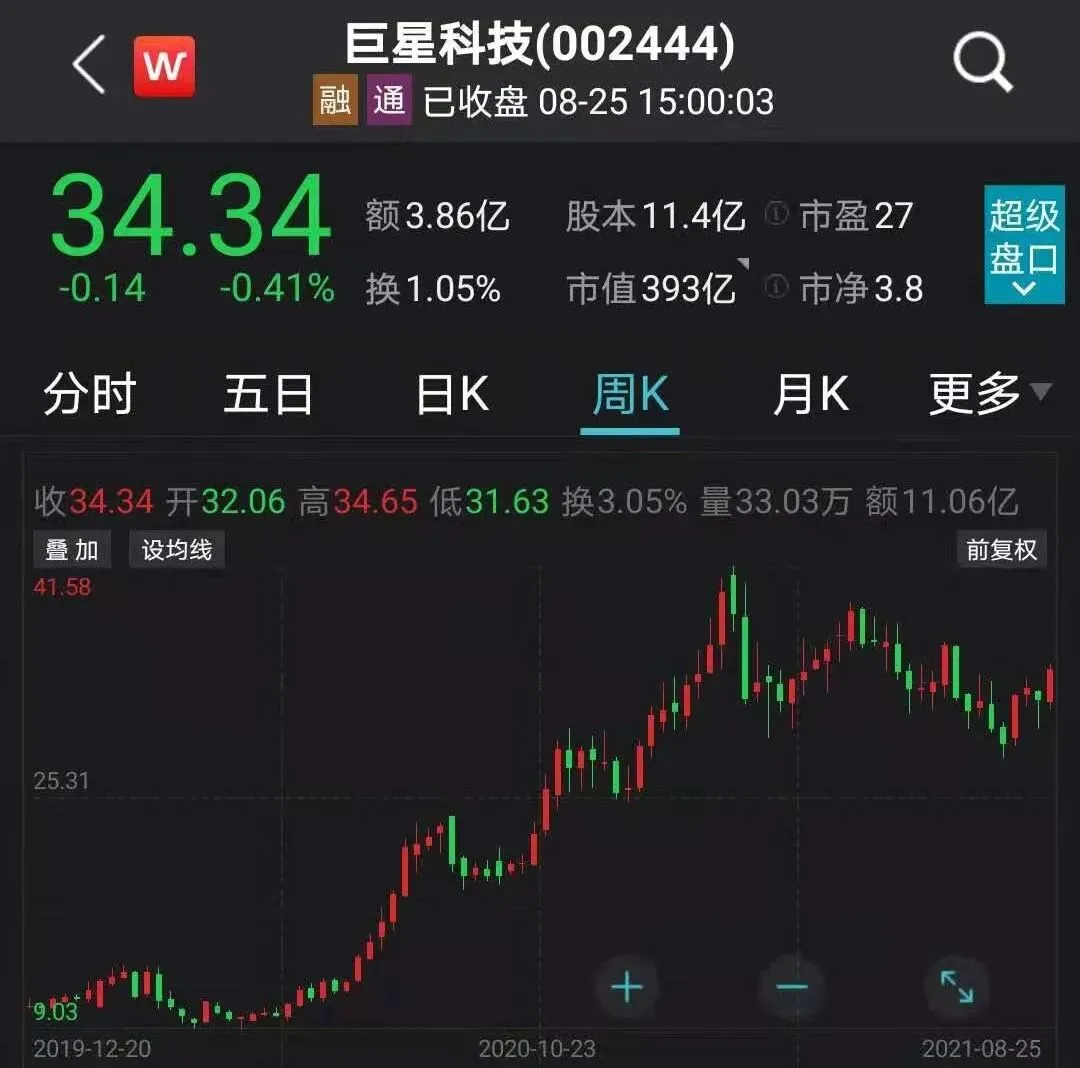 去年8月,巨星科技股价在20元上下徘徊,此后一路上涨,在今年2月创下41.58元的阶段新高。8月25日,巨星科技股价微跌0.41%,报34.34元/股。