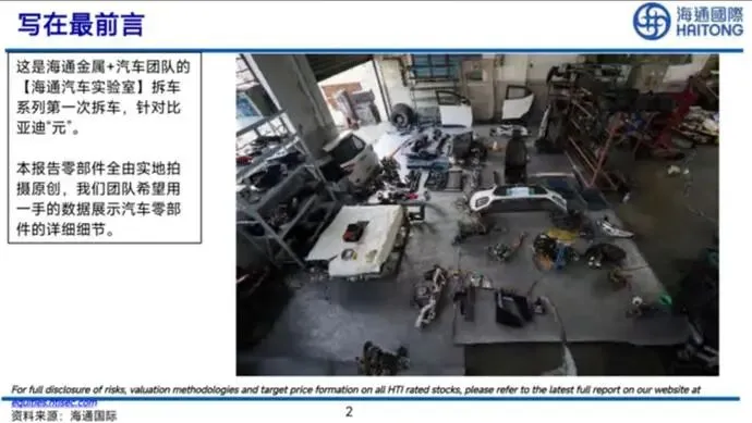 近期,海通国际一份名为《海通汽车实验室——比亚迪“元”细化拆解》的硬核研报在网络走红。原因在于该证券公司的分析师通过拆解比亚迪元EV,撰写了一份长达87页的研究报告。