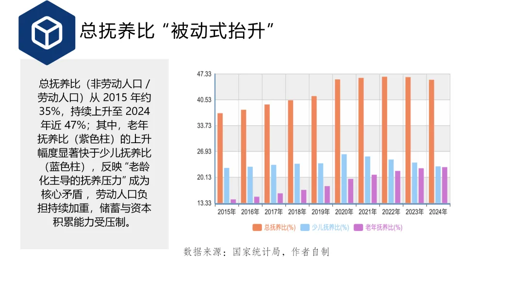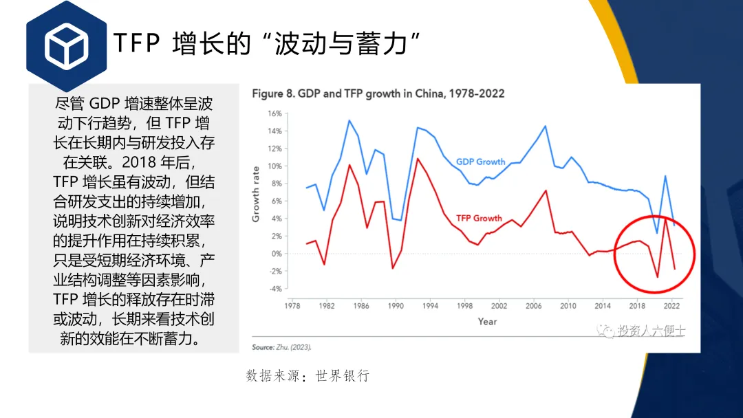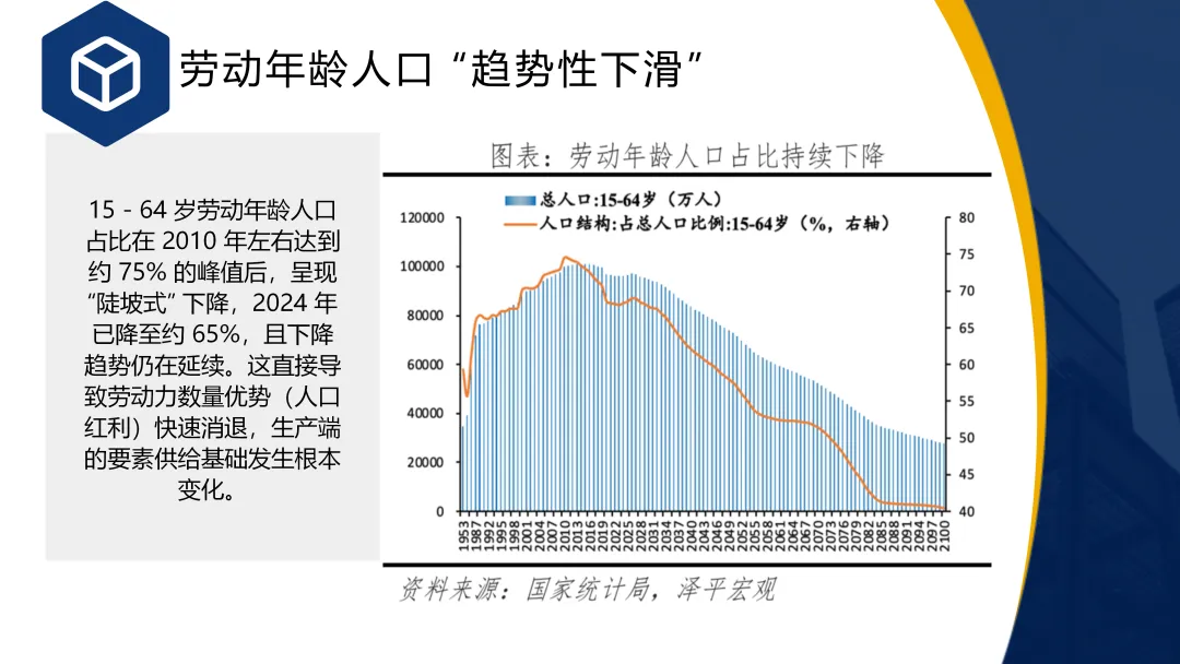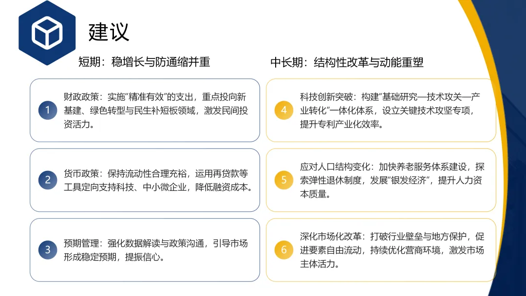 人口老龄化加速、劳动年龄人口下滑从供需两端制约长期增长;尽管研发投入持续提升,但全要素生产率增长未能有效转化为增长动能,技术转化机制有待加强。