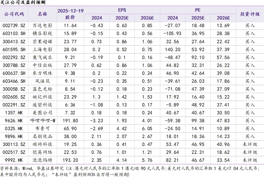贺岁档热闹开场,进口片如《疯狂动物城2》《阿凡达3》对观影均有提振,国产电影陆续定档加码贺岁档,电影供给如《情圣3》《寻秦记》《匿杀》《用武之地》《海绵宝宝》;后续春季档的影片陆续定档均有望提振观影人次,进而拉动线下入口价值,院线也成为体验经济的重要抓手之一,万达电影战略投资拍立方,布局影像社交消费赛道,凭借“大头贴+IP经济”切入年轻消费市场;同时万达电影在2025年春节已推出“四喜财神”文创并售罄,为公司非票业务毛利率带来积极推动;横店影视也将洽谈拓展线下商超综合体,门店将融入“潮玩+体验”模式;上海电影指出其已从单一的票务销售转向以IP为核心,以产业为纽带的共生生态,用IP承载情绪,用情绪共鸣打开消费决策新入口,电影院线作为体验经济的代表也有望承接精神消费