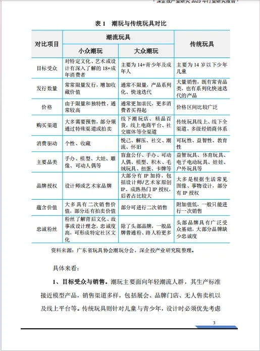 潮玩,又称 “艺术家玩具” 或 “设计师玩具”,主要面向 14 岁以上青少年及成年人,以潮流文化为核心,融合多元艺术元素,涵盖盲盒、手办、卡牌等多个品类。其诞生于世纪之交,受欧美日文化影响,经香港逐步兴起,2016 年泡泡玛特 MOLLY 星座系列盲盒的热销成为中国潮玩市场崛起的标志性事件。与传统玩具相比,潮玩在目标受众、设计理念、价值属性等方面差异显著,更注重 IP 赋能、收藏价值与社交属性。