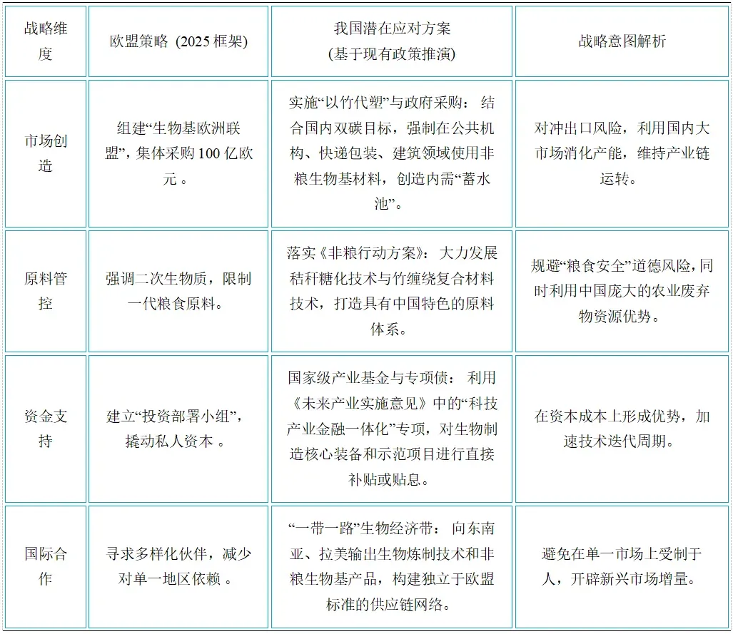 (1) 扩大创新与投资规模(Scaling up innovation and investments): 欧盟承认单纯的研发资金不足以支撑产业化。为此,委员会提议组建“生物经济投资部署小组”(Bioeconomy Investment Deployment Group),旨在通过公共资金分担风险,以此撬动私人资本进入高风险的生物炼制工厂建设领域。这直接对标了美国《通胀削减法案》(IRA)中的税收抵免政策以及中国在生物制造领域的政府引导基金模式。