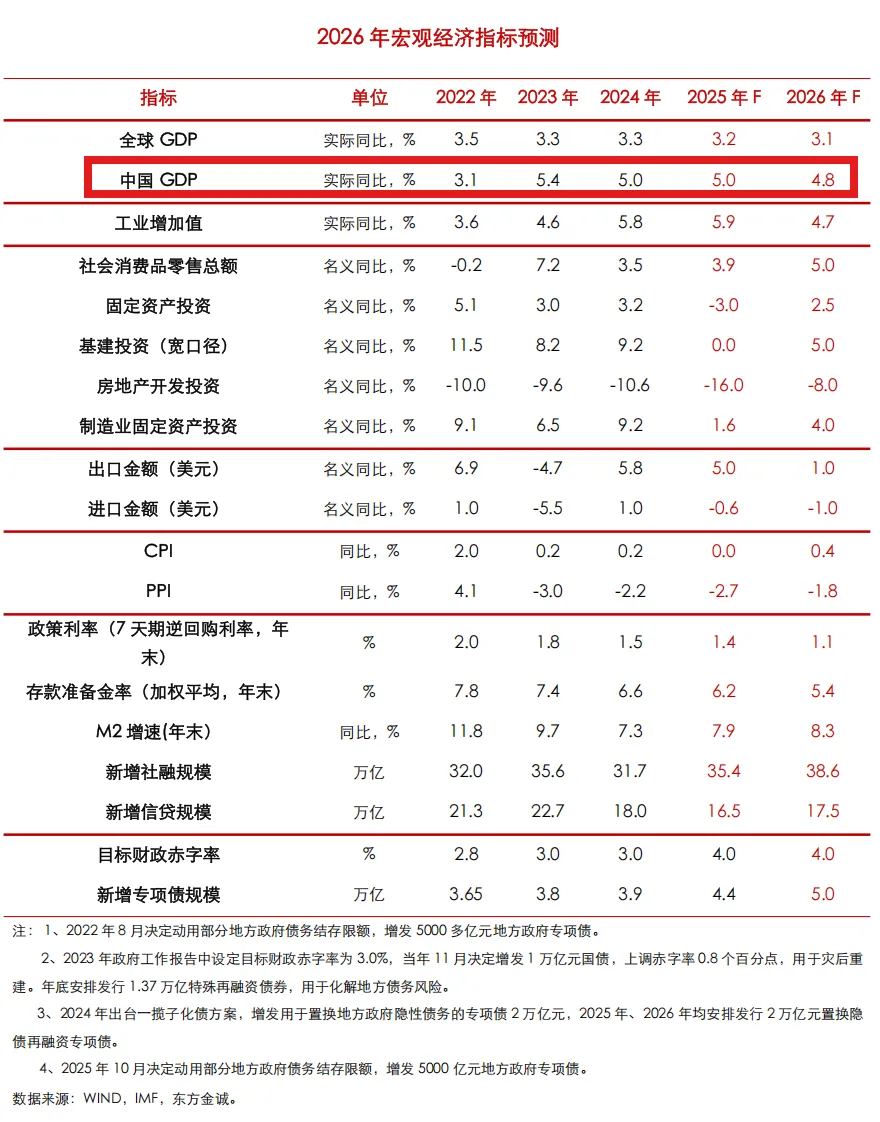 - 政策取向:财政赤字率4%(广义8.9%),货币宽松力度与2025年相当