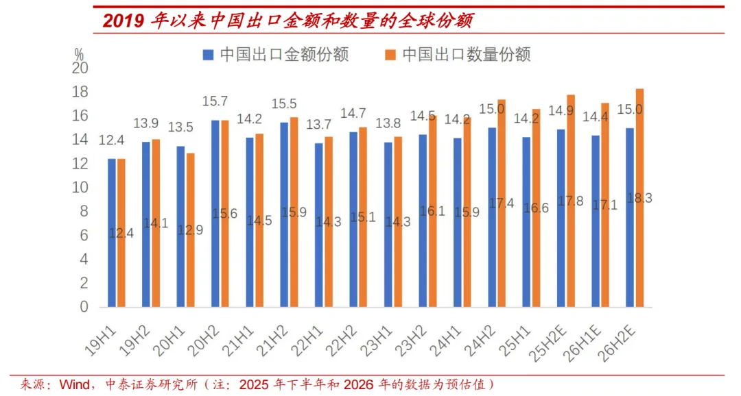 - 对美vs对新兴:对美出口降16%,对东盟出口增14%,全球份额提升对冲总量压力。