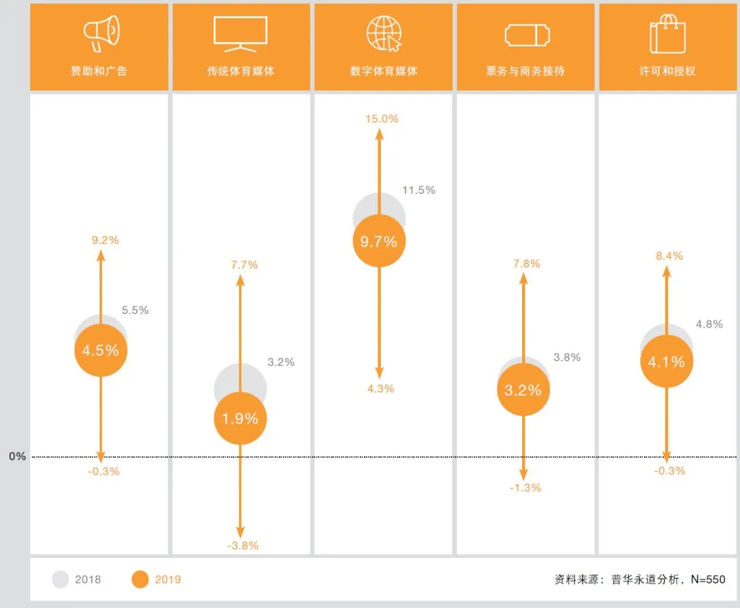 本报告由普华永道发布,数据主要基于2019年6-8月期间的网络问卷,调查对象主要为49个不同国家地区体育行业的590位从业人士,本篇内容选摘部分精华内容,全部转载自报告中文原文。