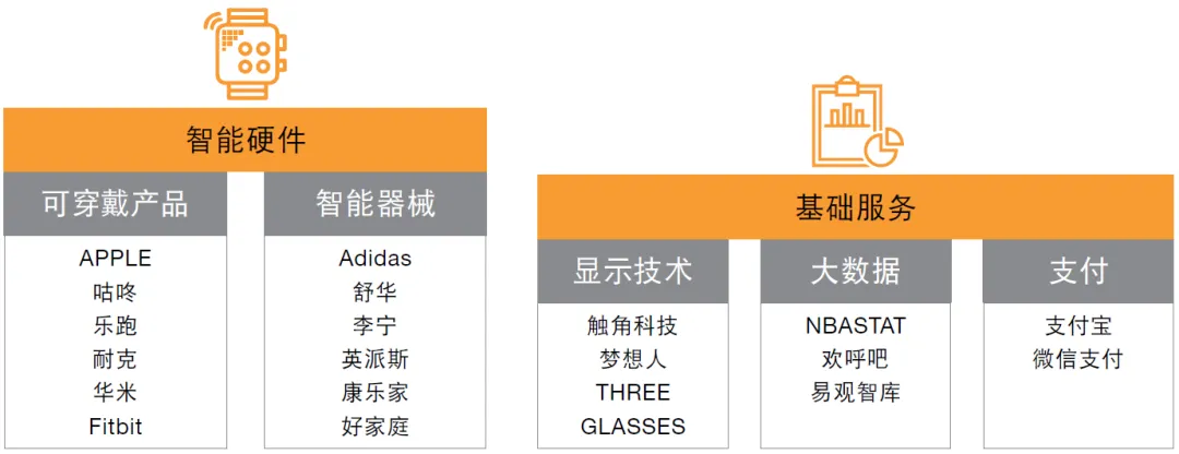 从图中可以看到,目前国内体育数字化转型的步伐正从C端迈向B端:除了面向C端的APP外,还有面向B端的对接体育资源和赞助商的体育管理平台,场馆运营平台等。