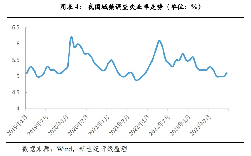2023年,我国城镇调查失业率平均值为5.2%,较上年下降0.4个百分点。分月看,除前2个月较高(分别为5.5%、5.6%)外,剩余月份均保持在5.5%以下;前11月,我国累计新增就业1180万人,完成“全年城镇新增就业1200万人以上”目标的问题不大。