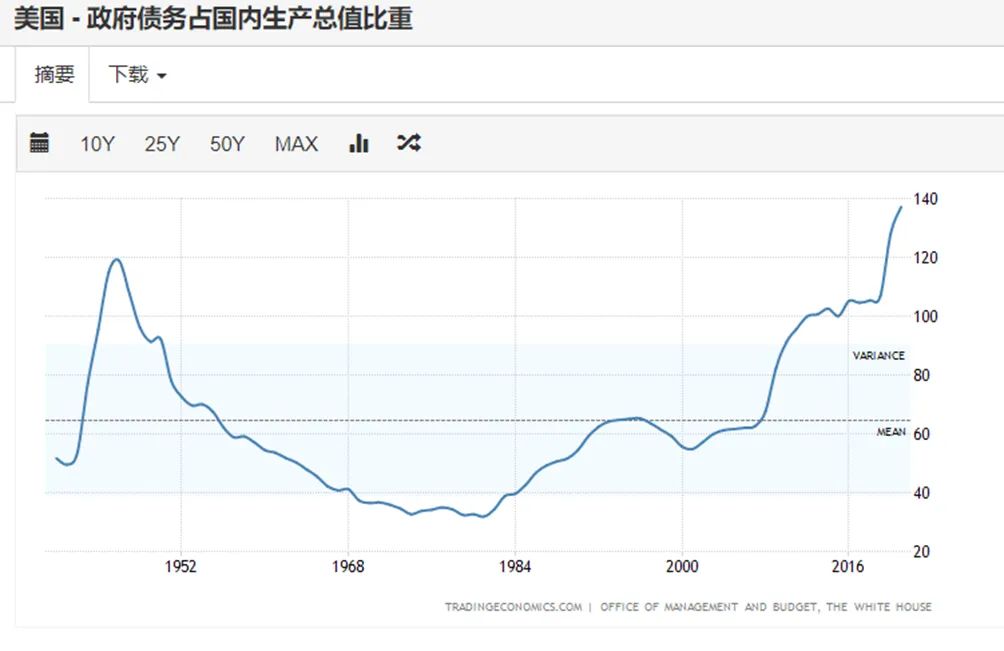 图2-3 美国政府债务占国内生产总值比重 [4]
