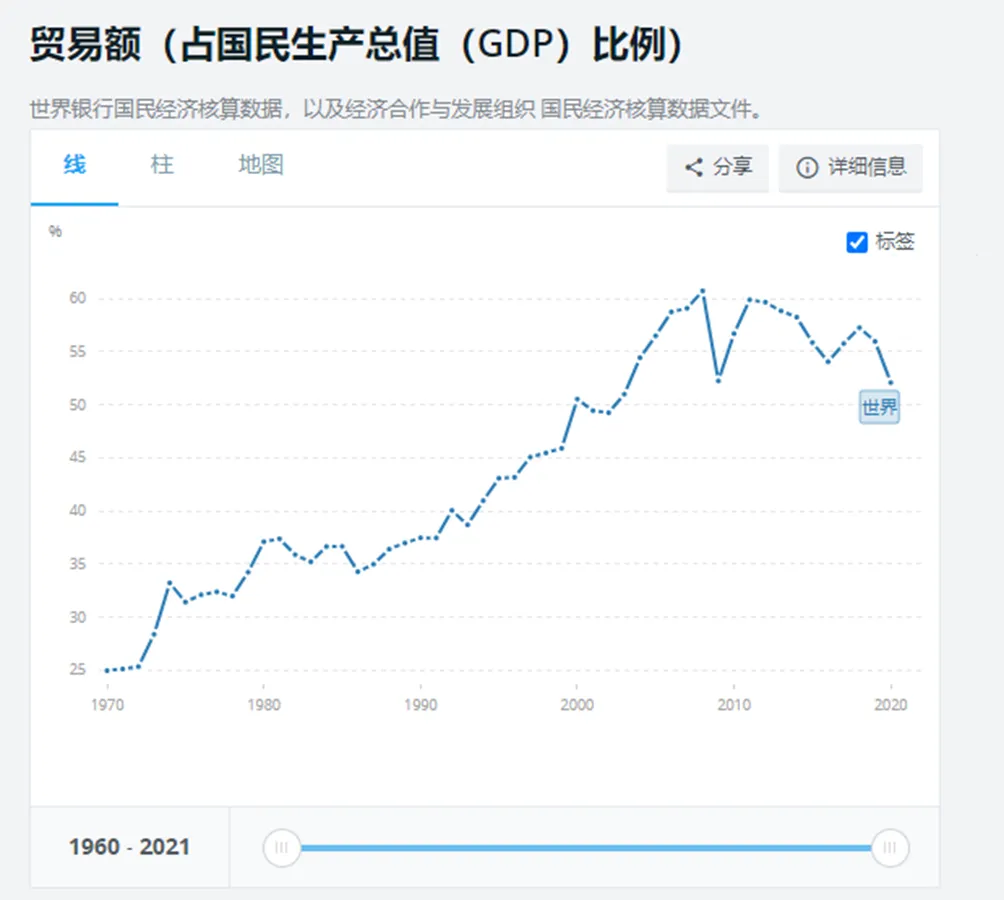 图2-6 世界贸易占GDP比值 [7]