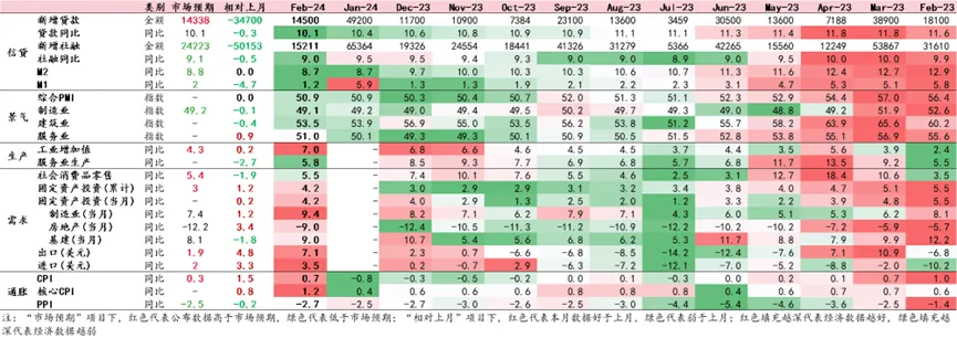 综合来看,1-2月经济呈现出量强价弱的特征。需求端出口数量(预计15%+)、投资(基建和制造业9%+、PPI-2.6%)、社零实际(6.2%),生产端工业生产(7.0%)+服务业生产(+5.8%),均对Q1的实际GDP增速提供了支撑。价格方面,1-2月累计同比来看CPI和PPI尚未走出通胀低迷的状态,房价同比仍在加速下跌。