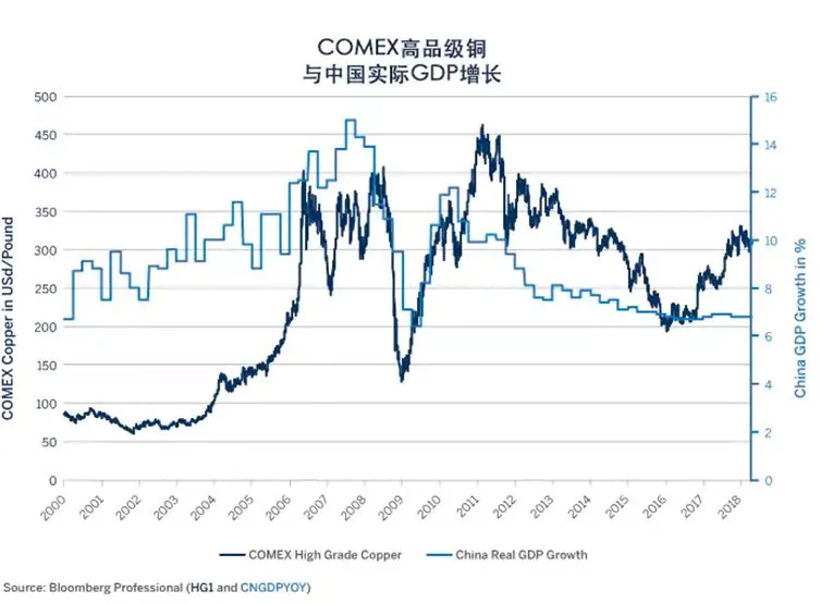 对于这个问题我们可以提供以下原因分析。首先,中国每年消耗全球40-50%的铜矿,使其成为全球铜价的一个重要决定性因素。其次,中国经济增速从2011年的11%降至2016年的6.7%,导致出现对更大范围和更深层次经济减速的担忧,而这种担忧没有演变成现实,因此引发铜等工业金属价格的反弹。另外一个我们认为更加具有意义和更加可信的原因,就是中国官方GDP未能完全体现2011-16年经济放缓以及之后反弹的程度。