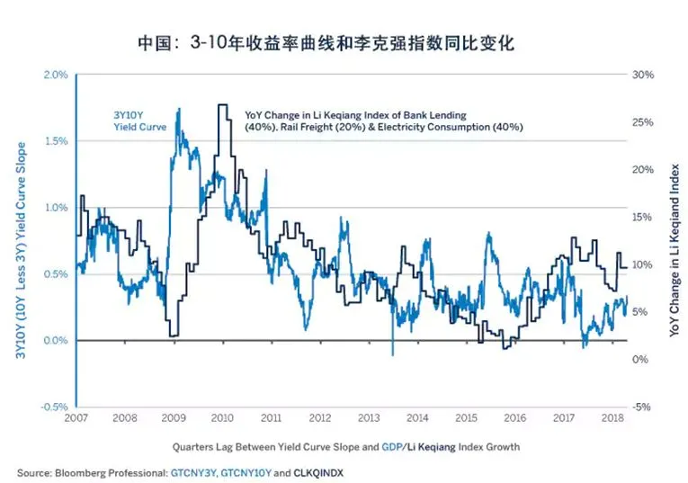 图4:中国的收益率曲线一般比增速提前2-5个季度。