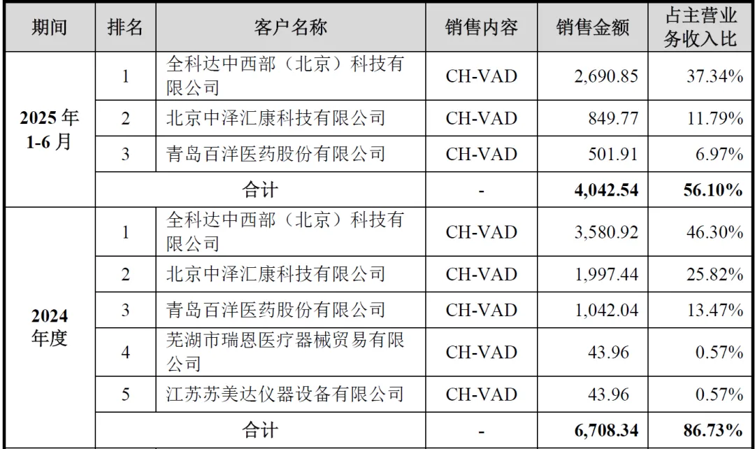 报告期内前五大客户收入占比均超过70%,主要依赖少数经销商与医院客户,若主要客户合作关系发生变化,可能影响收入稳定性。