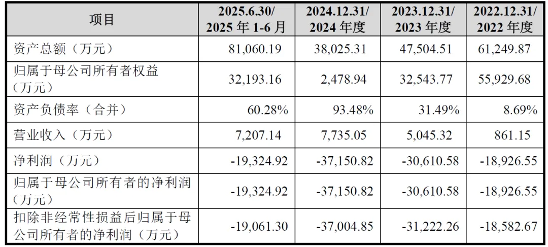 2025年6月末,公司资产总额8.11亿元,较2024年末大幅增长113.17%,主要系2025年6月完成E轮融资导致净资产增加;资产负债率60.28%,较2024年末的93.48%显著下降,财务结构有所优化。报告期内资产负债率波动较大,主要受融资进度与经营亏损影响。