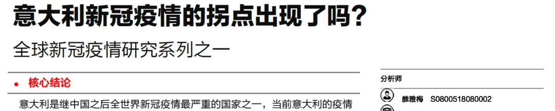 西部证券的分析师就在做这个事情,“意大利新冠疫情的拐点出现了吗?”其运用的逻辑是横向对比意大利和湖北的疫情形势和防控措施。
