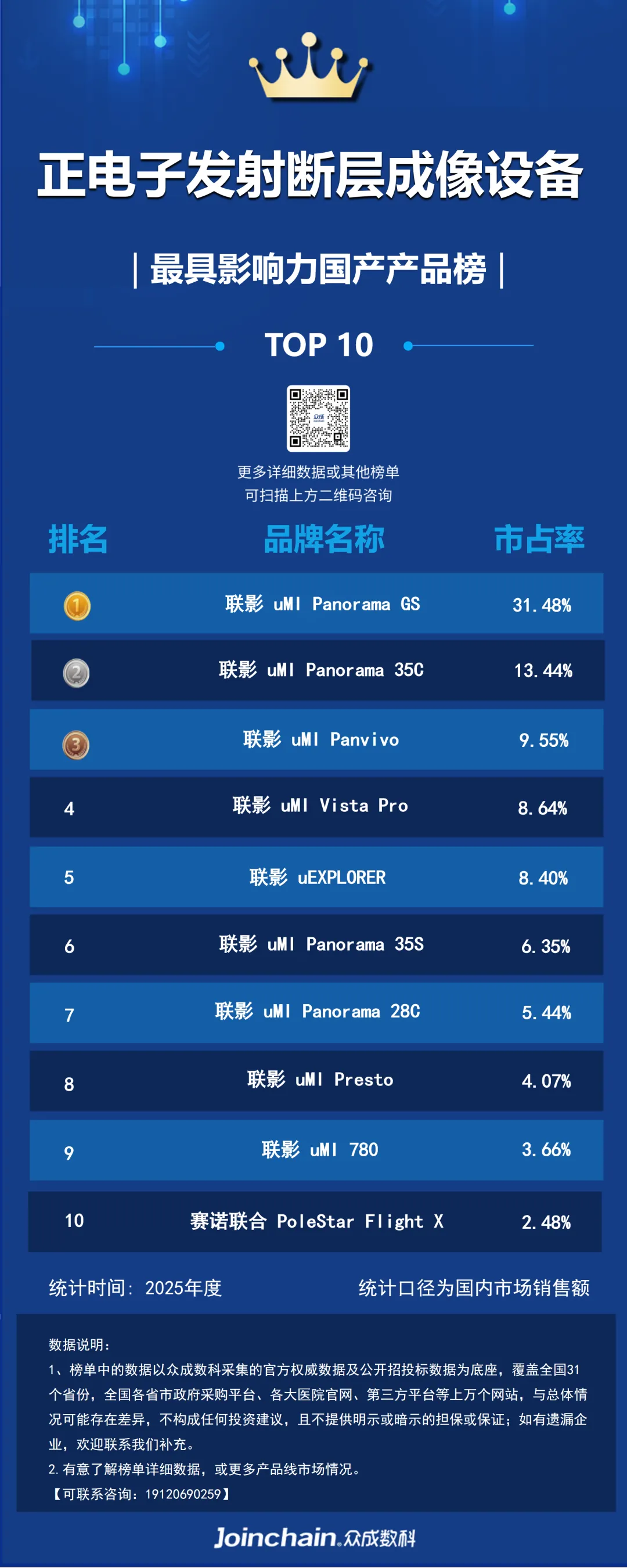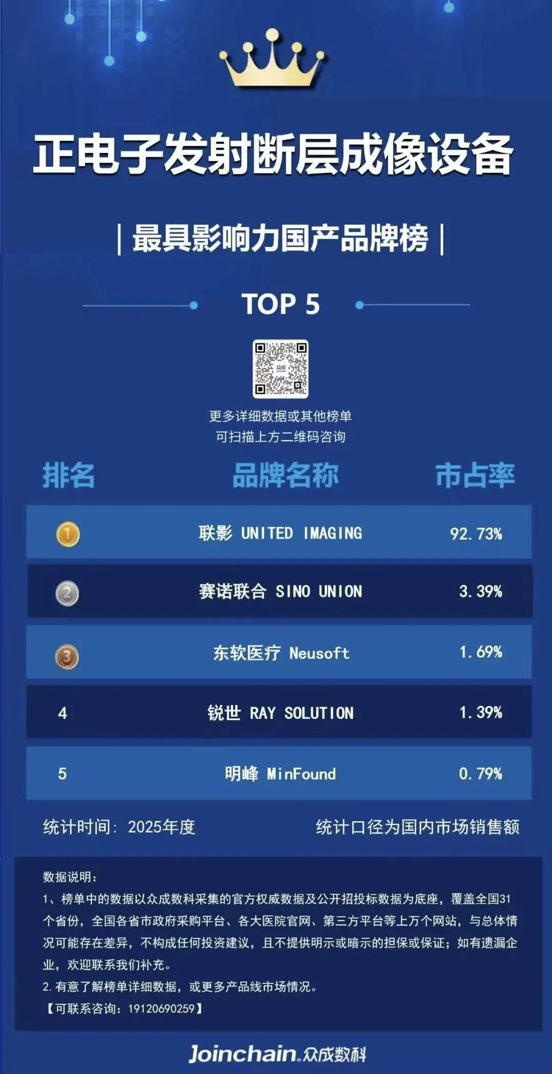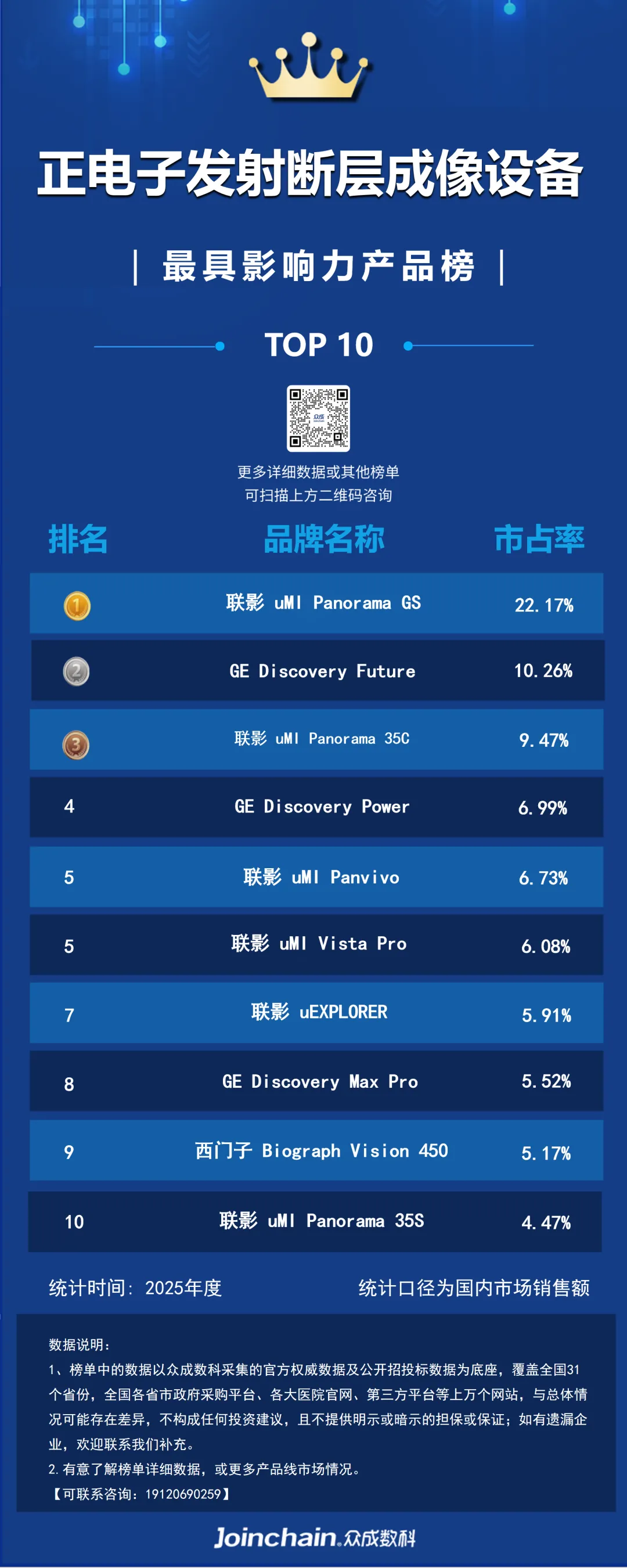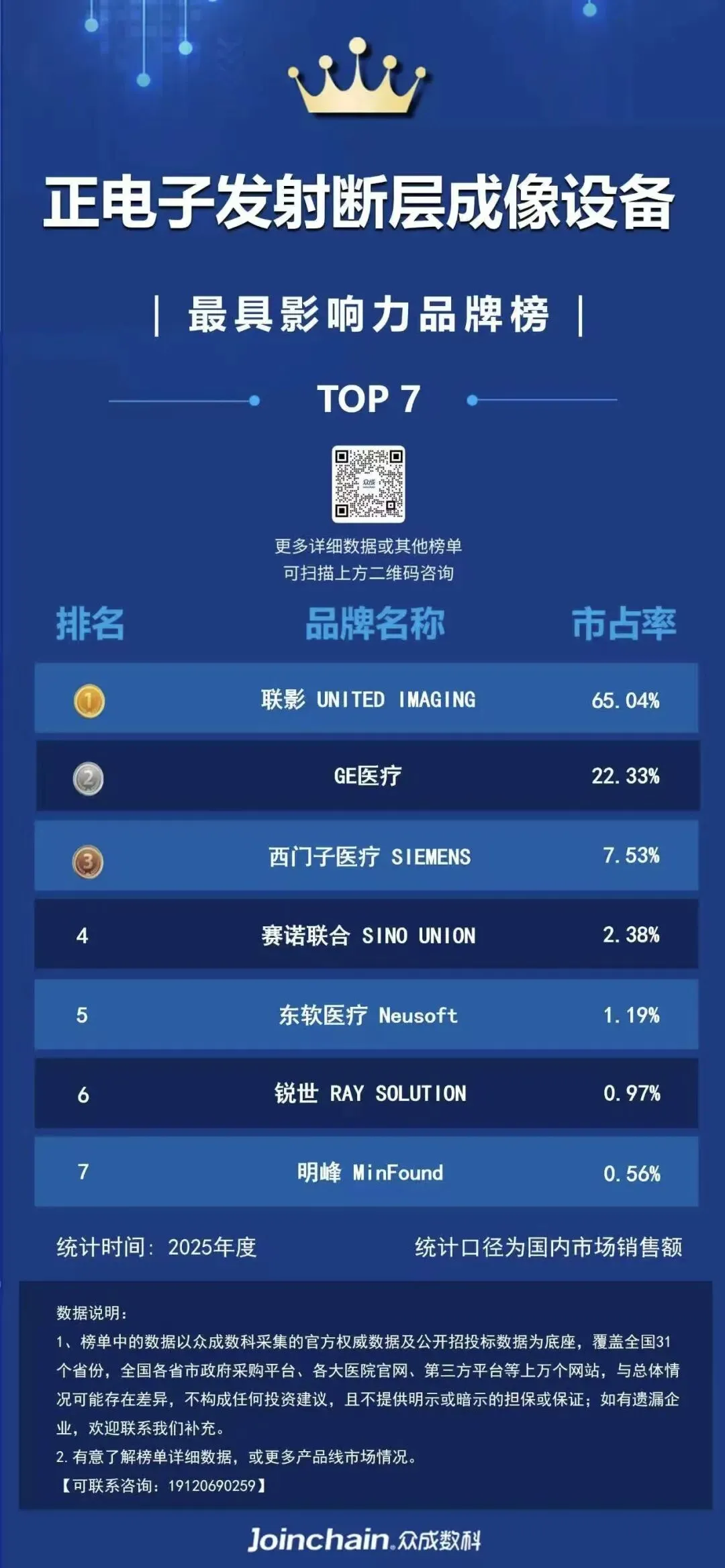 图 1 2025年度正电子发射断层成像设备最具影响力品牌榜(按照销售金额)