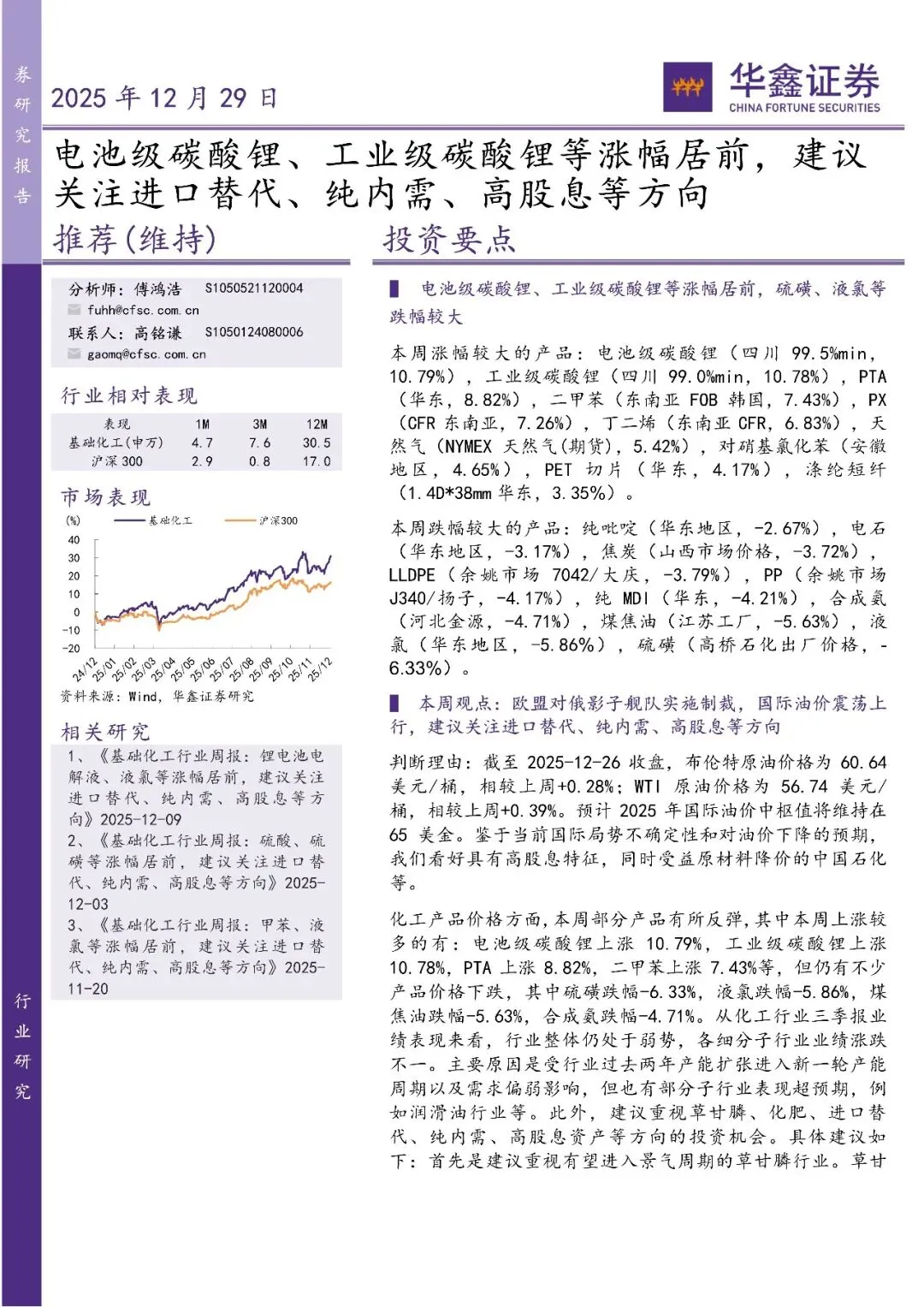 当前位置:首页>行业研报>基础化工行业研究:电池级碳酸锂、工业级碳酸锂等涨幅居前,建议关注进口替代、纯内需、高股息等方向