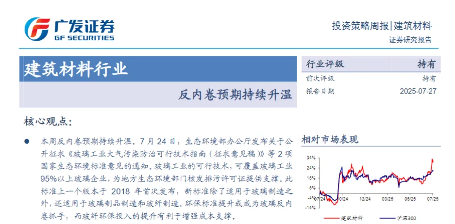 近期,广发证券发布建筑材料行业投资策略周报,指出行业“反内卷”预期正持续升温,尤其在环保政策趋严、供给端自律加强的背景下,板块盈利修复信号愈发清晰。对于投资者而言,当前建材行业是否已至布局时点?哪些细分领域更具韧性?一起来看核心解读。