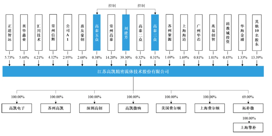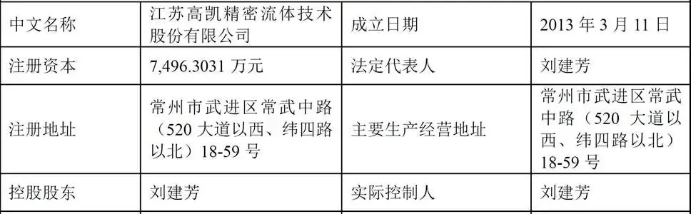 公司总部位于江苏省常州市武进区,注册资本7,496.3031万元,法定代表人为刘建芳。自成立以来,高凯技术始终致力于解决精密流体控制领域的“卡脖子”难题,推动相关核心部件的国产化进程。经过多年发展,公司已形成流量控制系列、点胶封装系列和精密涂胶系列三大核心产品板块,并在半导体设备流体控制领域取得了显著突破,部分产品已应用于7nm及以下先进制程前道工艺设备。