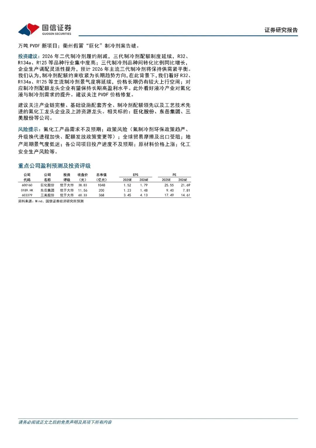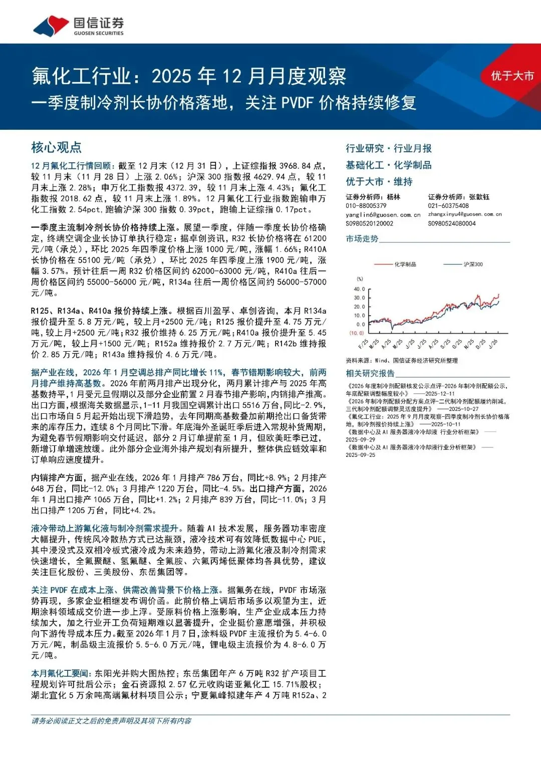 回复暗号:氟化工行业:2025年12月月度观察,一季度制冷剂长协价格落地,关注PVDF价格持续修复-260108-国信证券-27页