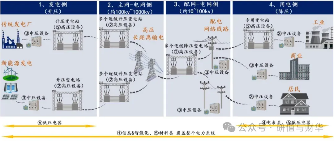 主要职能:变压、配电、控制电力流向(电压 > 100kV),支撑特高压远距离输电,适配AI数据中心集中供电需求。