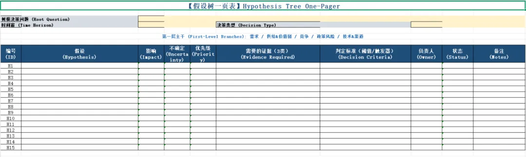 回到主题,行业研究的路线、优先级判断和验证闭环,谁来支撑?假设树,把研究变成验证游戏:先把大问题拆成一组可证伪的假设,再按影响*不确定排优先级,最后呢,用证据逐条验真、验伪。