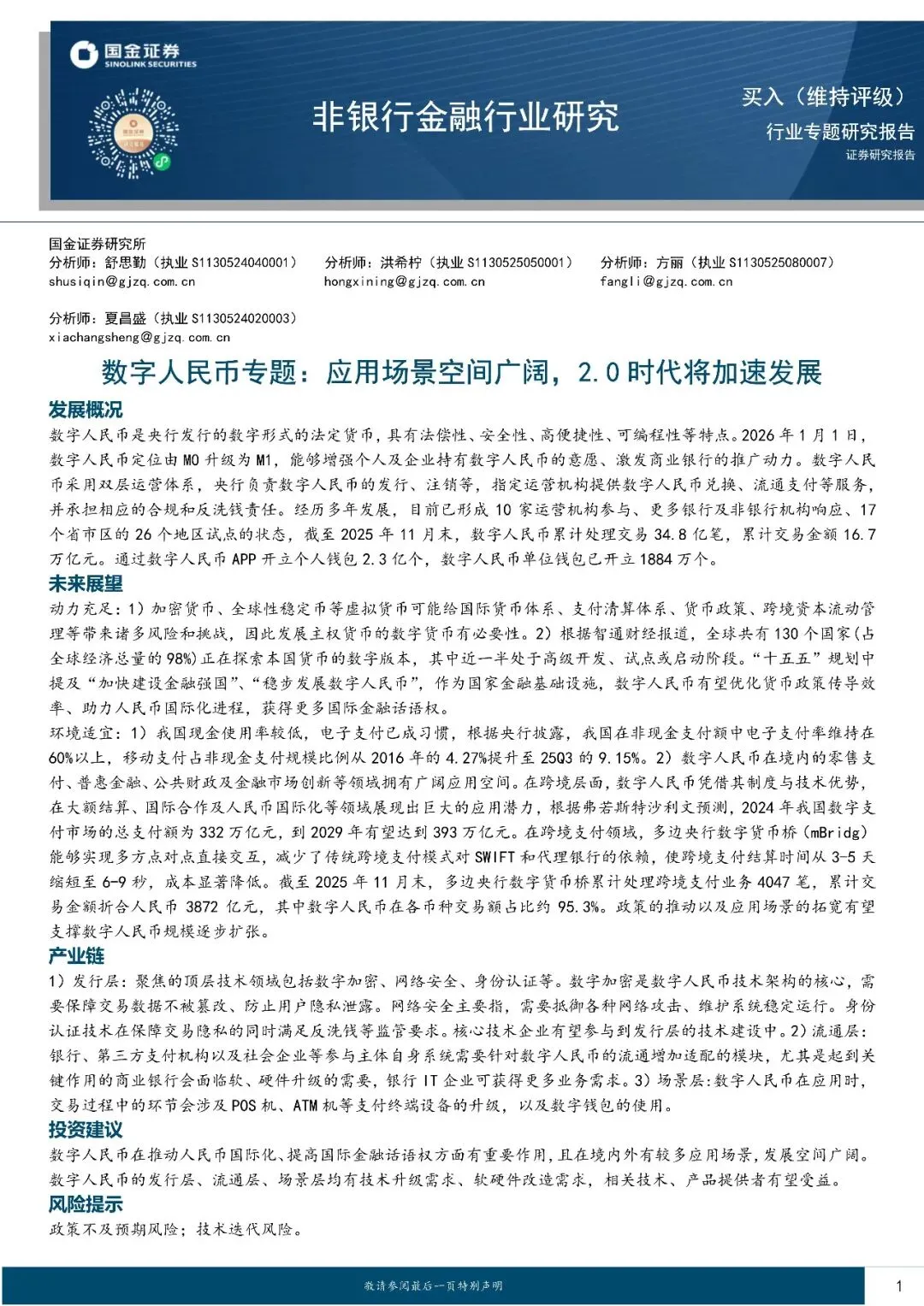 回复暗号:非银行金融行业研究:数字人民币专题,应用场景空间广阔,2.0时代将加速发展-260106-国金证券-18页