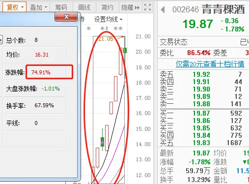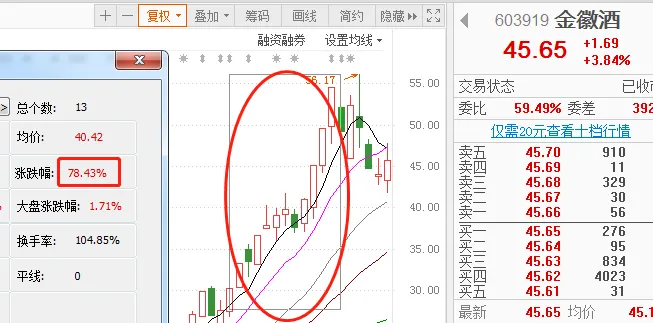 根据上面两位白酒大妖判断,上涨空间基本上是六个板左右,涨幅接近70%。
