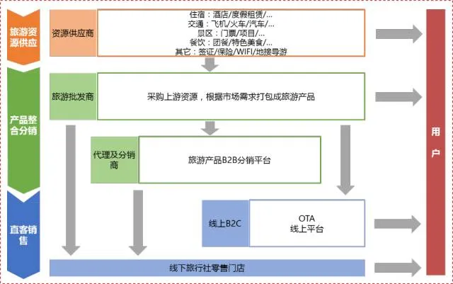 批发商根据市场需求事先设计好旅游产品,然后将产品通过代理及分销商或线下零售商销售给客户,并为终端客户直接提供产品及服务;