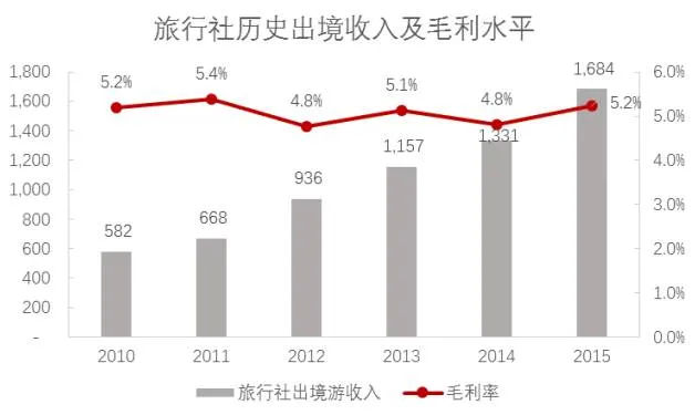 批发商对旅游资源端的控制力度不够,导致旅游产品大多呈同质化。一方面导致行业进入门槛较低,目前国内拥有出境资质的旅行社逾4,000家且持续扩容,仅2016年当年新获批出境旅行社已超过500家,市场出现分散化碎片化的特征。另一方面,客户在选购时决策差异点主要集中在价格,导致各家批发商不得不通过价格竞争获取市场;目前,批发商行业整体毛利率水平在4%-6%之间的低位徘徊,没有体现出作为承担整合境外资源复杂业务操作的出境游服务应有的高毛利。