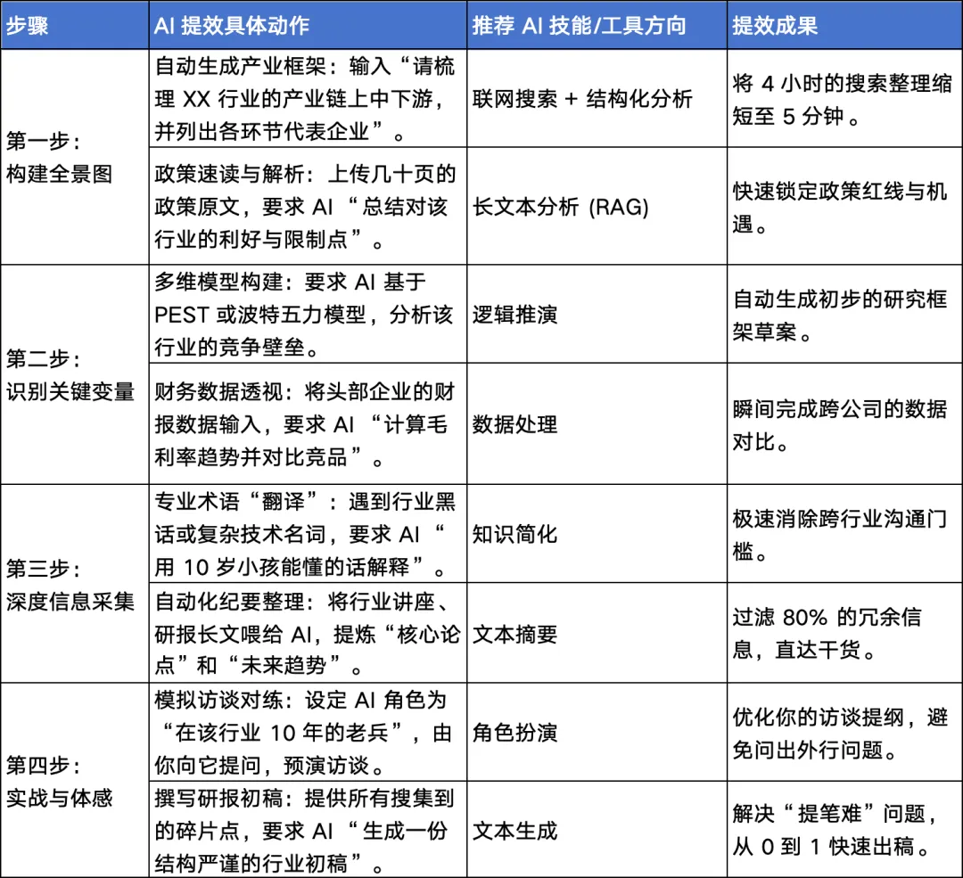 通过这套“四步走”的 AI 调研工作流,你会发现,了解一个新行业对你来说简直是so easy!