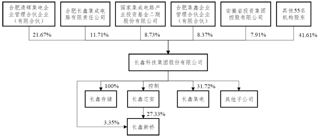 截至招股说明书签署日,公司总股本为601.93万股,股权结构较为分散,无控股股东和实际控制人。直接持有公司5%以上股份的股东共有5家,分别为清辉集电(21.67%)、长鑫集成(11.71%)、大基金二期(8.73%)、合肥集鑫(8.37%)及安徽省投(7.91%),均无单一股东持股比例超过50%。