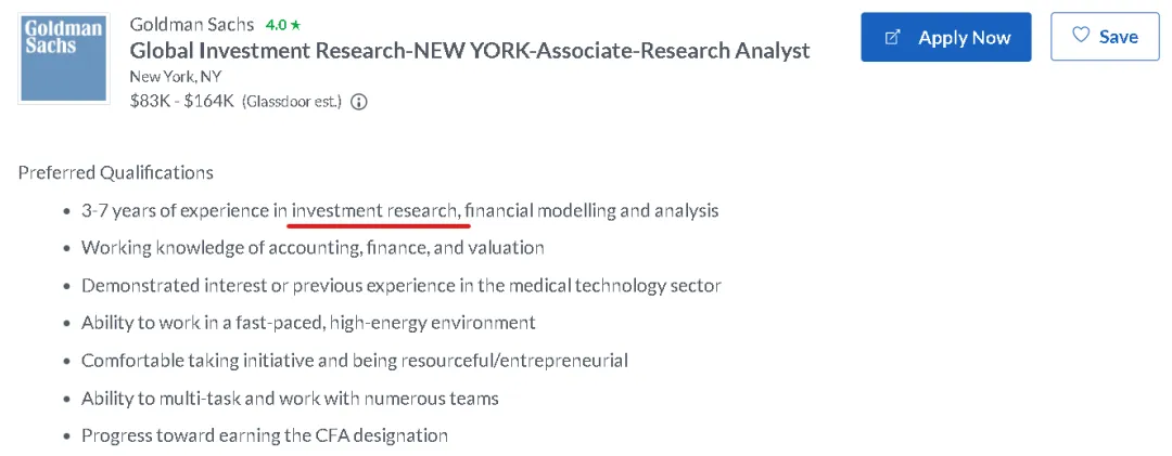 九大投行一直都把行业研究作为员工必备技能,高盛分析师岗位就明确指出我们就是需要有行研能力的人。